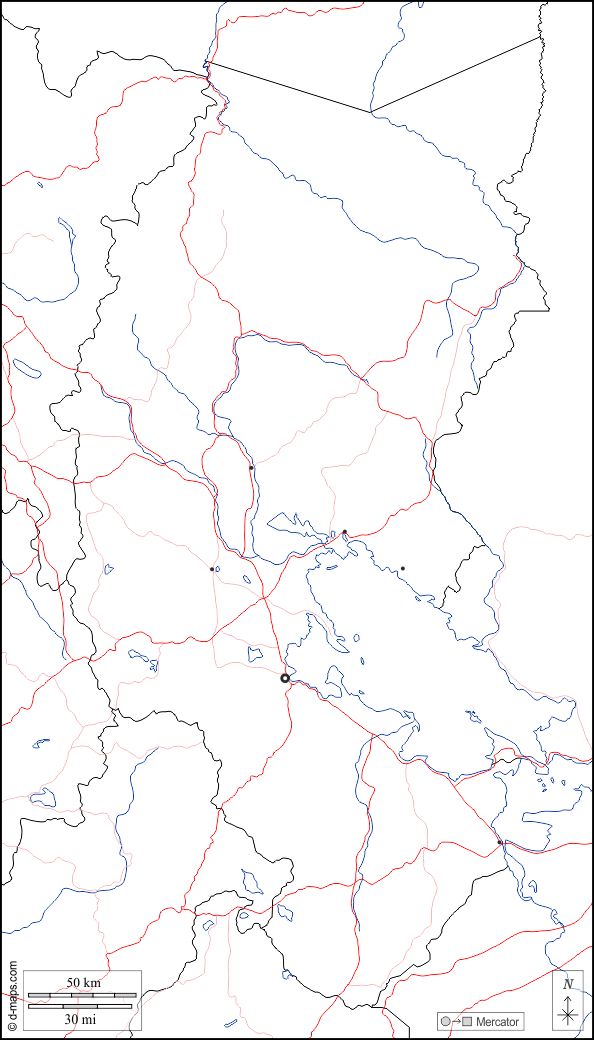 边界, 水文学, 主要城市, 道路, 白