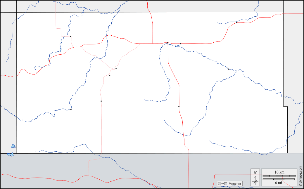 d-maps > 美国 > 南达科他州 > 托德县 > 边界, 水文学, 主要城市, 道路