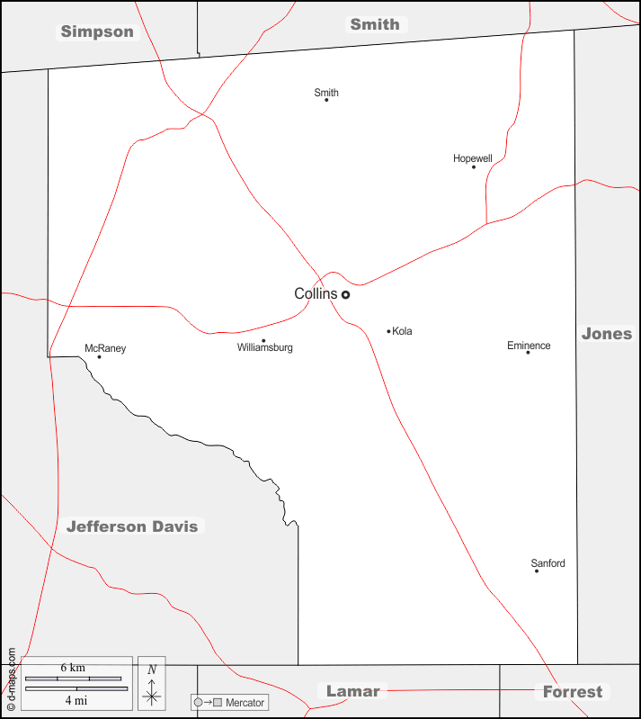 Collins, Eminence, Hopewell, Kola, McRaney, Sanford, Smith, Williamsburg.