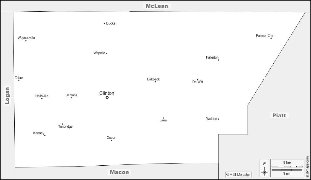 d-maps > 美国 > 伊利诺伊州 > 德威特县 > 边界, 主要城市, 名称