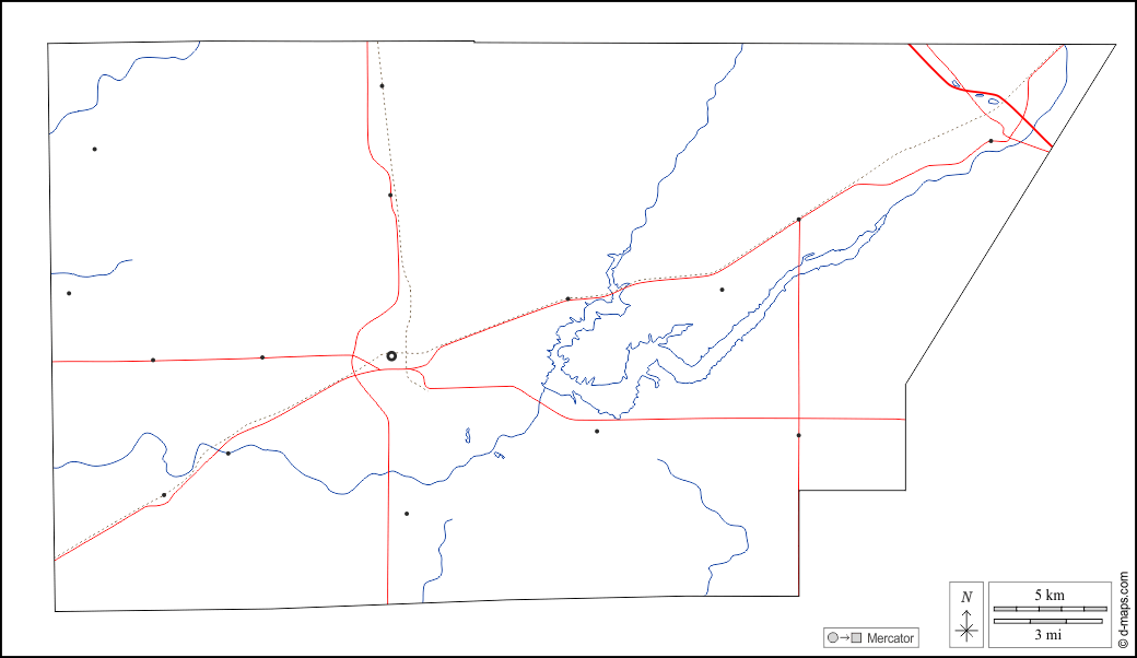 d-maps > 美国 > 伊利诺伊州 > 德威特县 > 大纲, 水文学, 主要城市, 道路, 白