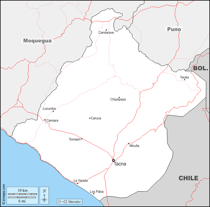 d-maps > 美洲 > 秘鲁 > 塔克纳 > 边界, 主要城市, 道路, 名称