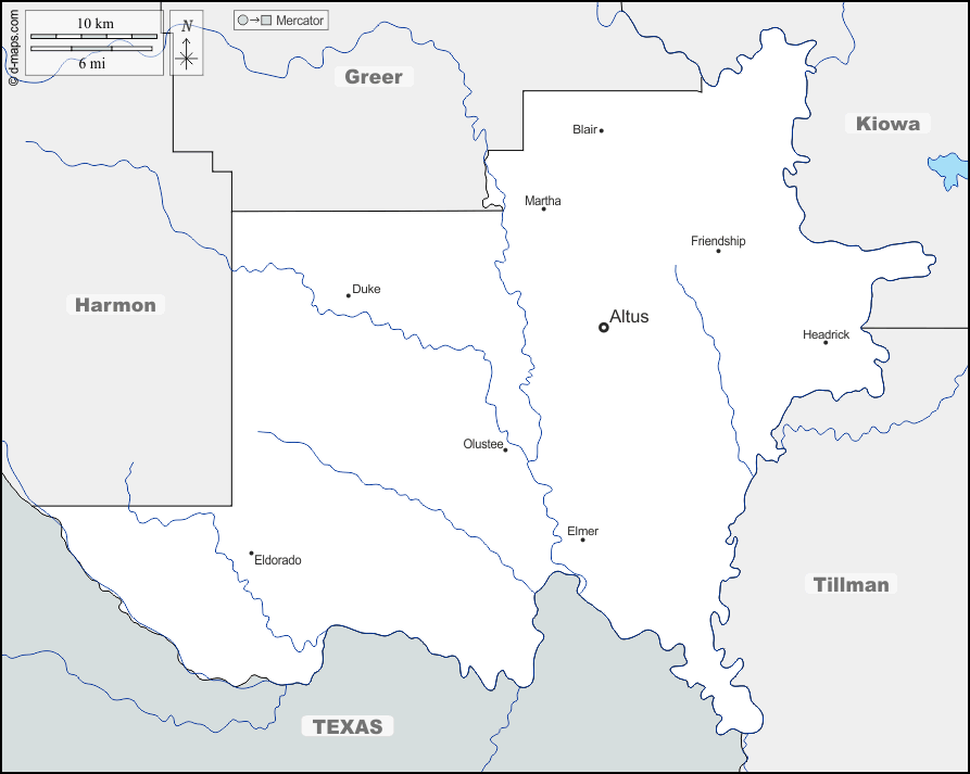 Altus, Blair, Duke, Eldorado, Elmer, Friendship, Headrick, Martha, Olustee.