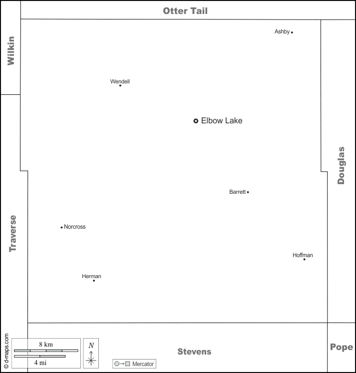 Ashby, Barrett, Elbow Lake, Herman, Hoffman, Norcross, Wendell.