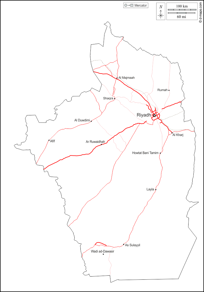 阿菲夫、杜迪米、哈吉、马吉马、鲁瓦伊达、苏莱伊尔、霍塔特巴尼塔米姆、莱拉、利雅得、鲁马、沙克拉、瓦迪达瓦西尔。