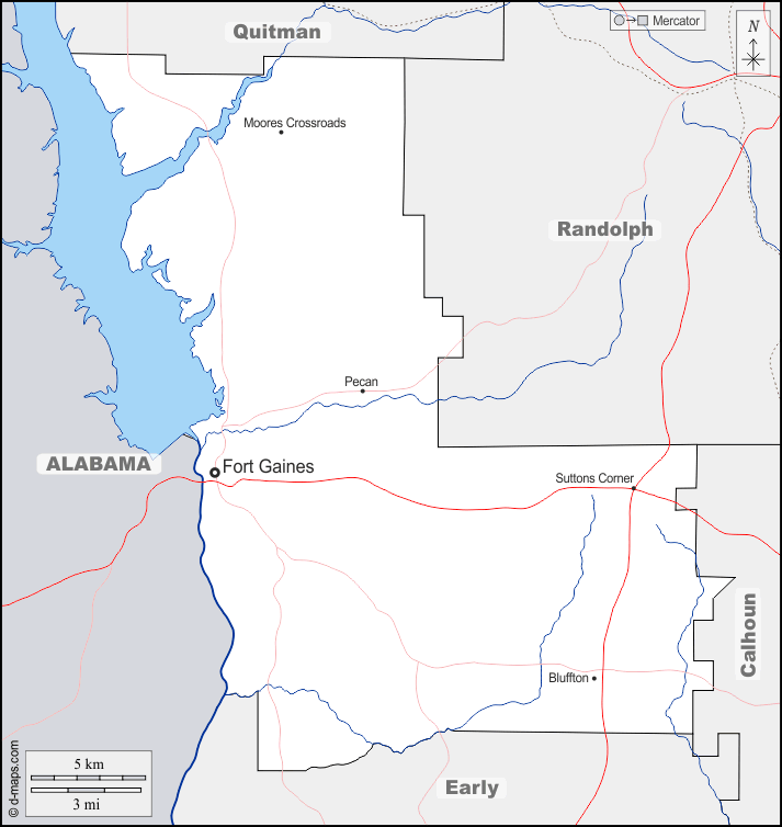 Bluffton, Fort Gaines, Moores Crossroads, Pecan, Suttons Corner.