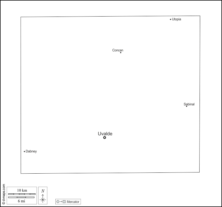 Concan, Dabney, Sabinal, Utopia, Uvalde.