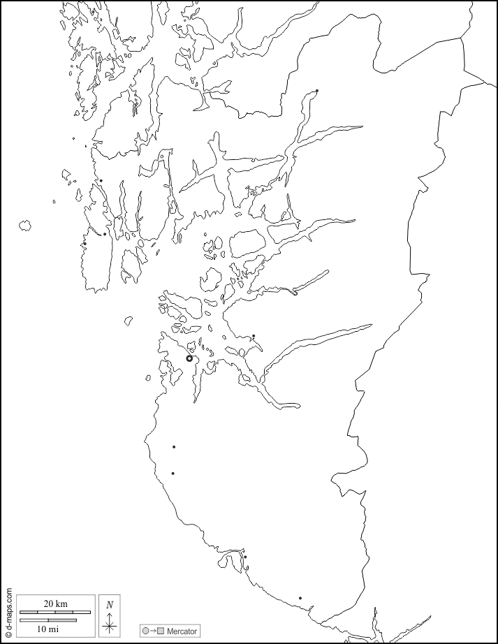 Bryne - Egersund - Hauge - Haugesund - Jørpeland - Kopervik - Nærbø - Sauda - Stavanger - Åkrehamn
