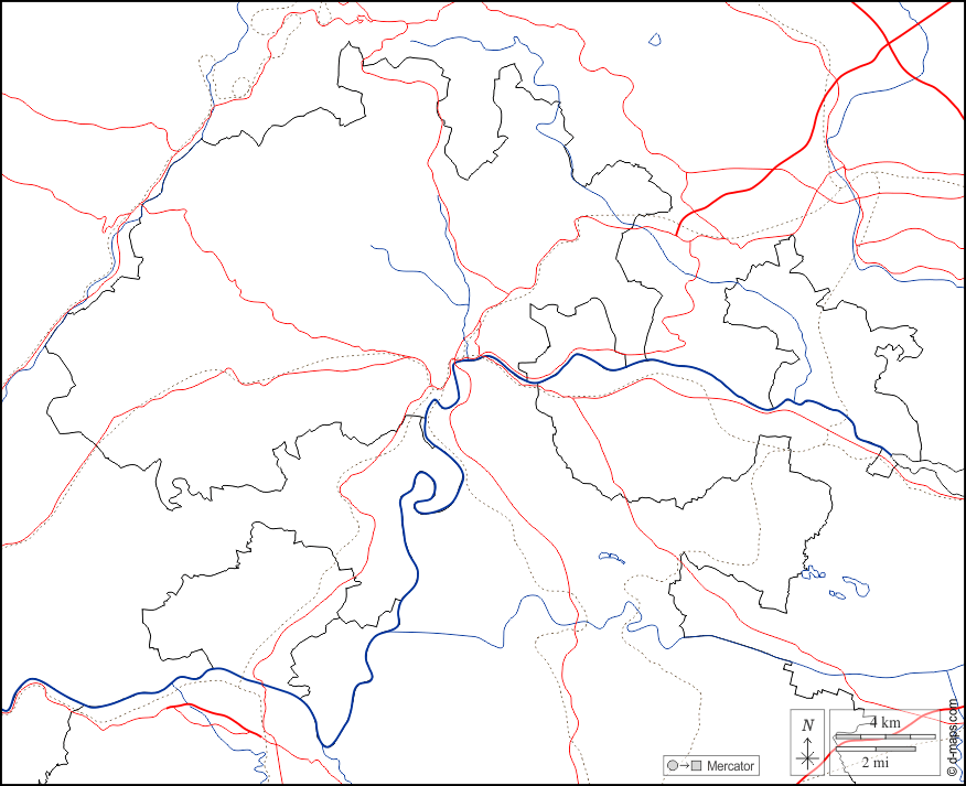 d-maps > 欧洲 > 瑞士 > 沙夫豪森 > 边界, 水文学, 道路, 白