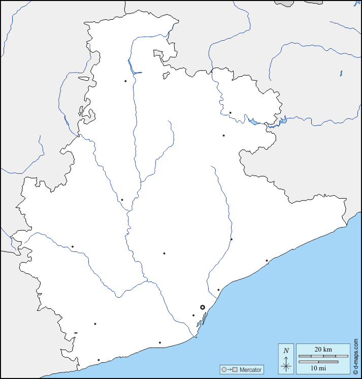 d-maps > 欧洲 > 西班牙 > 巴塞罗那 > 边界, 水文学, 主要城市