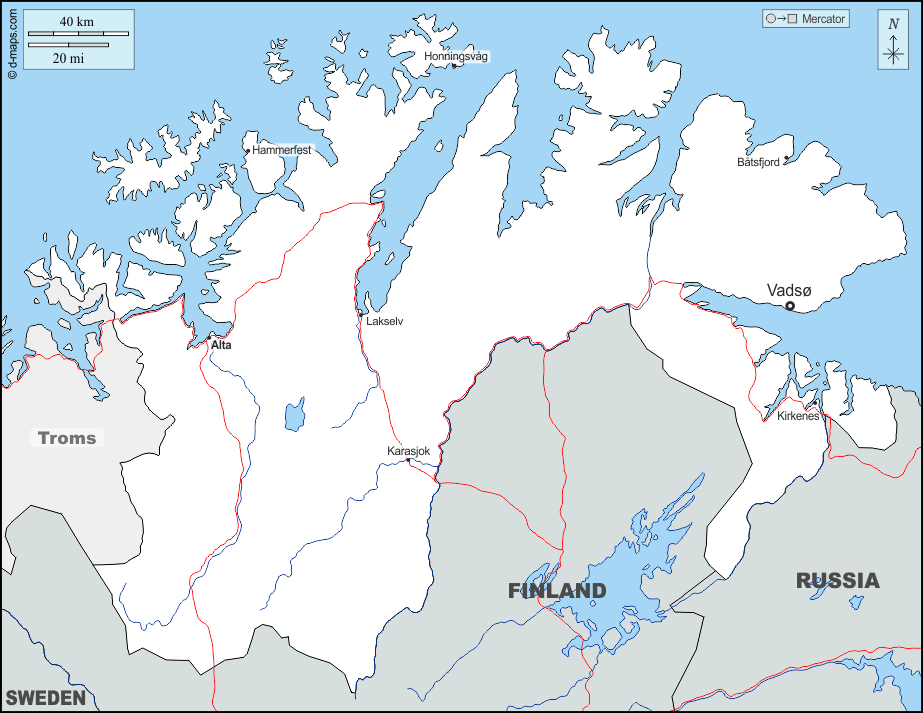 Alta - Båtsfjord - Hammerfest - Honningsvåg - Karasjok - Kirkenes - Lakselv - Vadsø