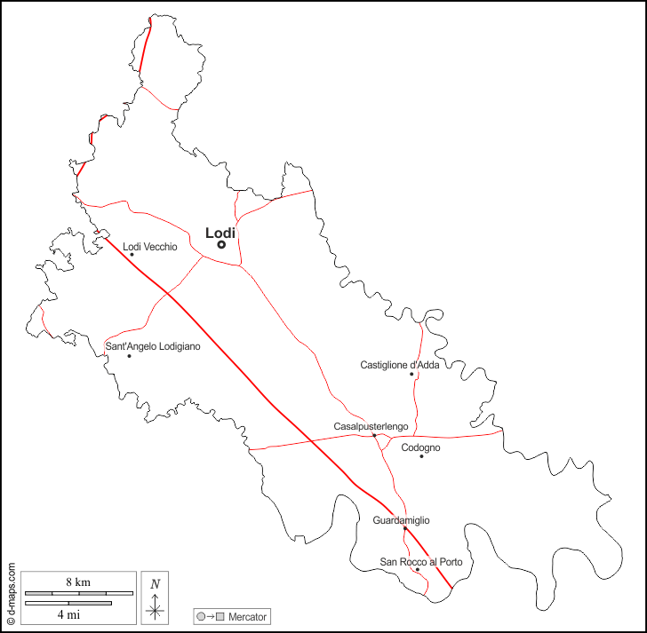 d-maps > 欧洲 > 意大利 > 洛迪 > 大纲, 主要城市, 道路, 名称, 白