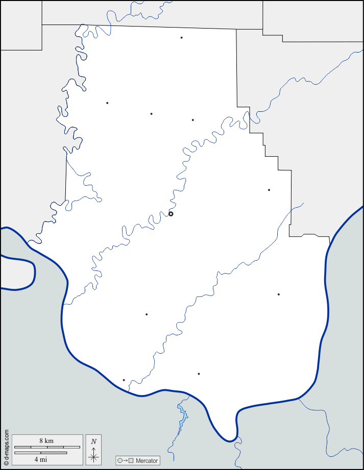 d-maps > 美国 > 印第安纳州 > 哈里森縣 > 边界, 水文学, 主要城市