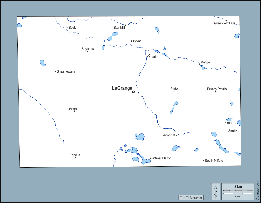 d-maps > 美国 > 印第安纳州 > 拉格蘭奇縣 > 大纲, 水文学, 主要城市, 名称