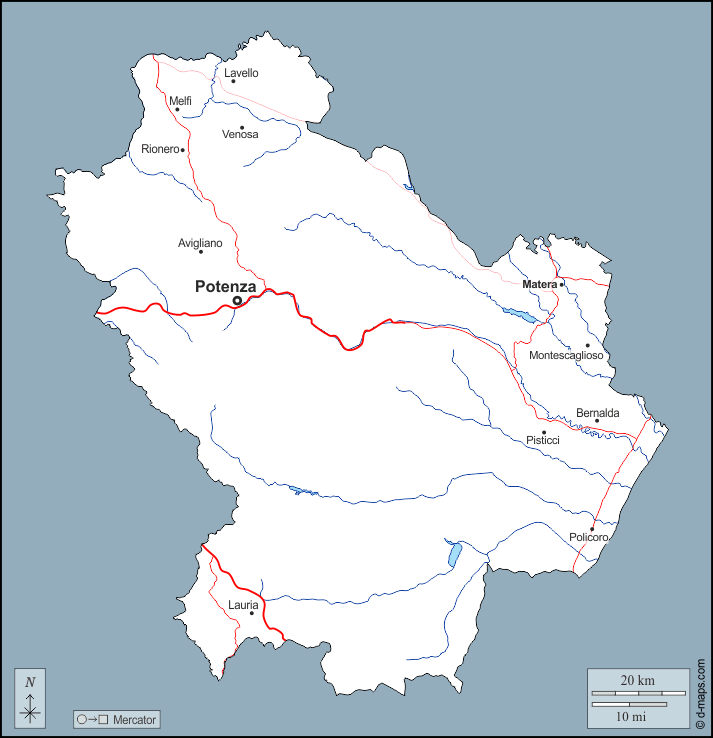 阿维利亚诺、贝尔纳尔达、劳里亚、拉韦洛、马泰拉、梅尔菲、蒙特斯卡利奥索、皮斯蒂奇、波利科罗、波坦察、里奥内罗、韦诺萨。