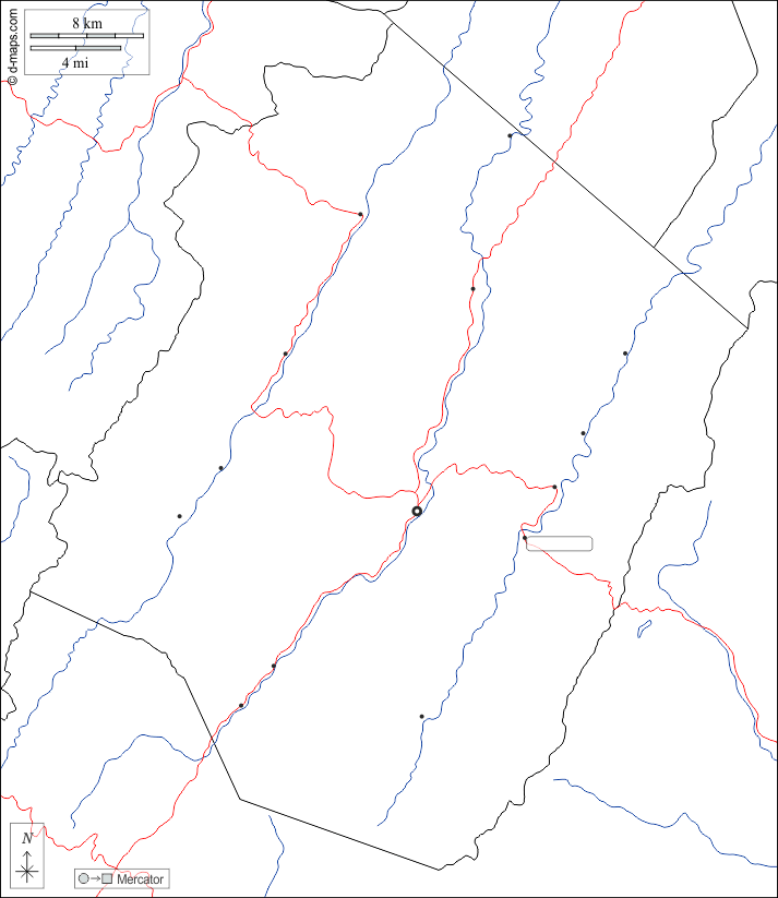 d-maps > 美国 > 西維吉尼亞州 > 彭德爾頓縣 > 边界, 水文学, 主要城市, 道路, 白