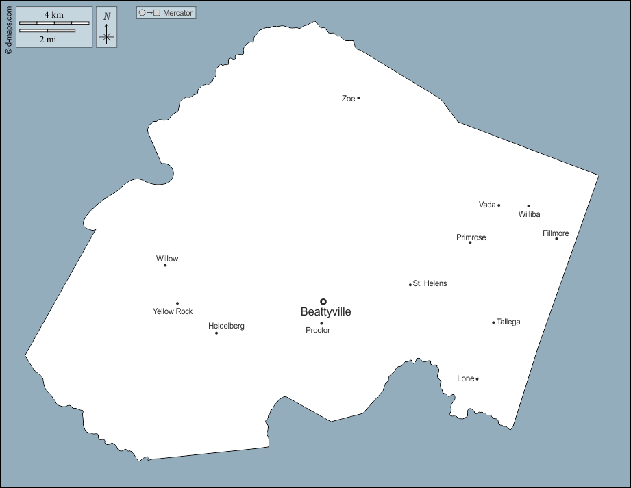 Beattyville - Fillmore - Heidelberg - Lone - Primrose - Proctor - St. Helens - Tallega - Vada - Yellow Rock