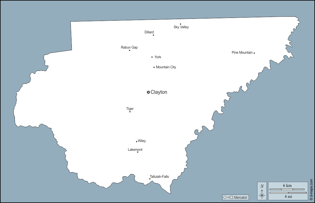 Clayton - Dillard - Lakemont - Mountain City - Pine Mountain - Rabun Gap - Sky Valley - Tallulah-Falls - Tiger - Wiley - York