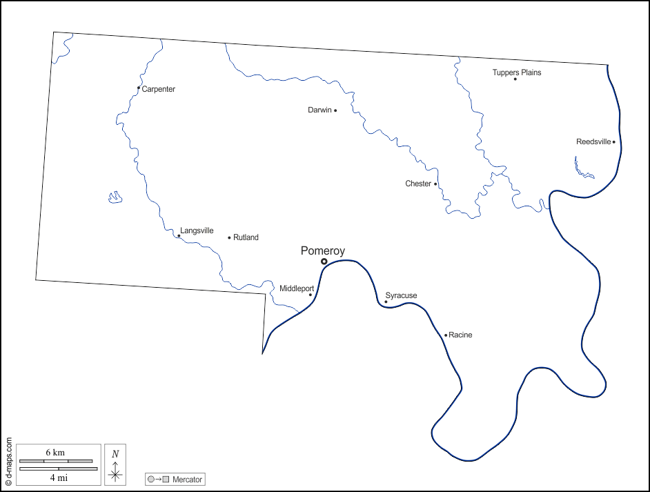 d-maps > 美国 > 俄亥俄州 > 梅格斯縣 > 大纲, 水文学, 主要城市, 名称, 白