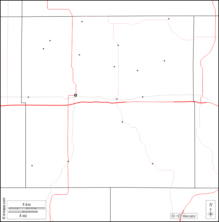 d-maps > 美国 > 艾奥瓦州 > 特拉華縣 > 边界, 主要城市, 道路, 白