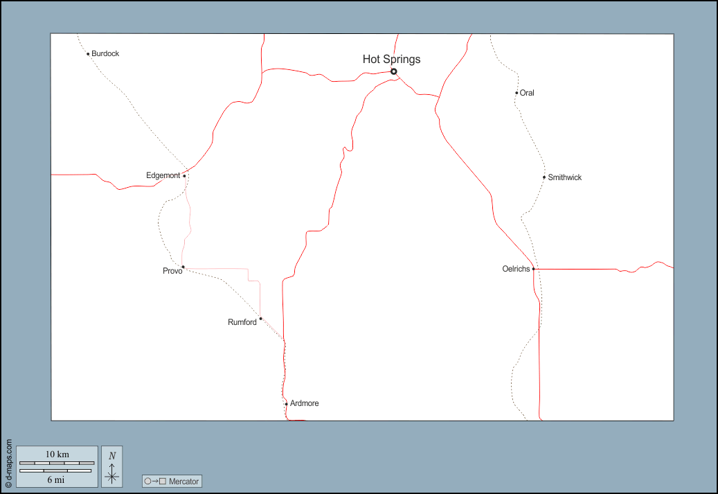 Ardmore - Burdock - Edgemont - Hot Springs - Oelrichs - Oral - Provo - Rumford - Smithwick