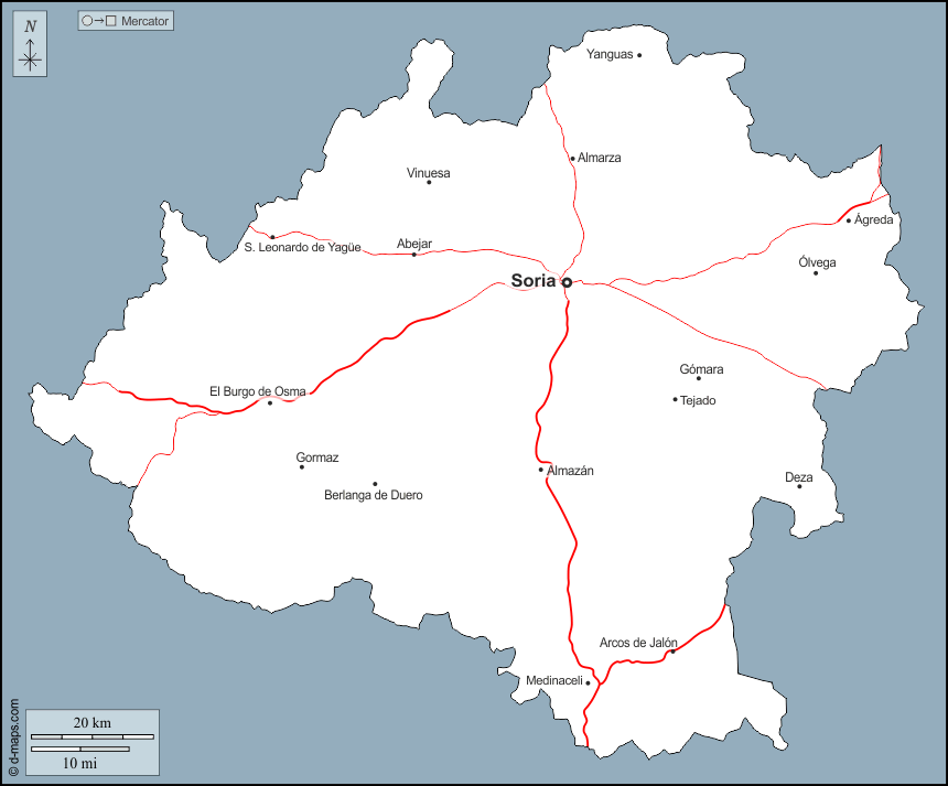 d-maps > 欧洲 > 西班牙 > 索里亚 > 大纲, 主要城市, 道路, 名称