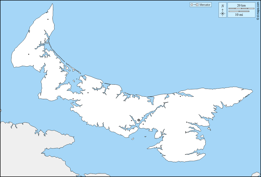 d-maps > 美洲 > 加拿大 > 愛德華王子島省 > 边界, 主要城市
