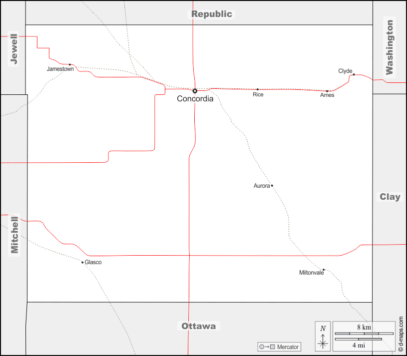 Ames - Aurora - Clyde - Concordia - Glasco - Jamestown - Miltonvale - Rice