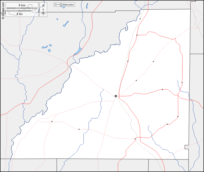 d-maps > 美国 > 喬治亞州 > 米切爾縣 > 边界, 水文学, 主要城市, 道路