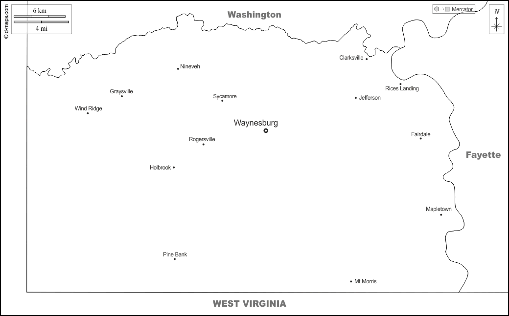 d-maps > 美国 > 宾夕法尼亚州 > 格林縣 > 边界, 主要城市, 名称, 白