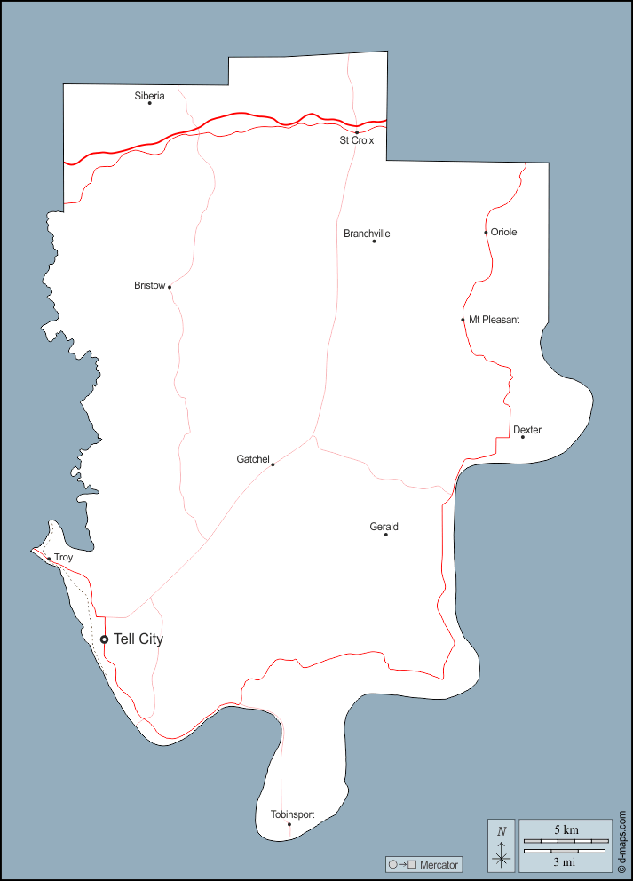Branchville - Bristow - Dexter - Gatchel - Gerald - Mt Pleasant - Oriole - Siberia - St Croix - Tell City - Tobinsport - Troy
