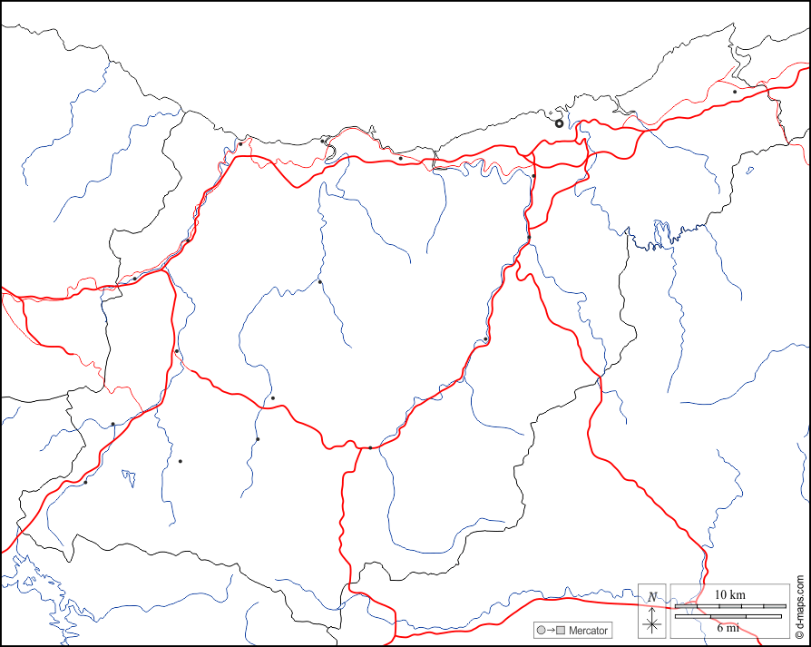 d-maps > 欧洲 > 西班牙 > 吉普斯夸省 > 边界, 水文学, 主要城市, 道路, 白