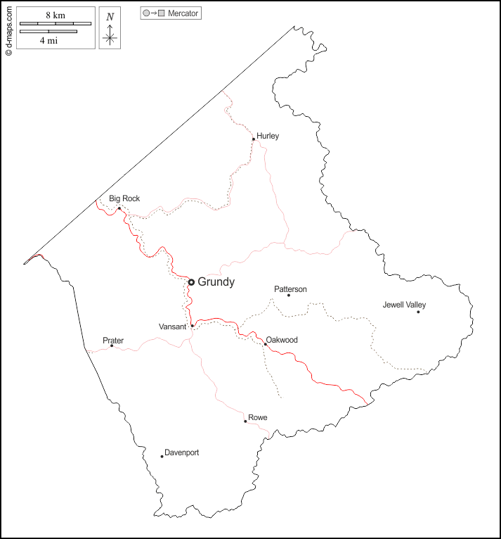 d-maps > 美国 > 弗吉尼亚州 > 布坎南縣 > 大纲, 主要城市, 道路, 名称, 白