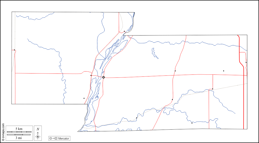 d-maps > 美国 > 伊利诺伊州 > 馬歇爾縣 > 大纲, 水文学, 主要城市, 道路, 白