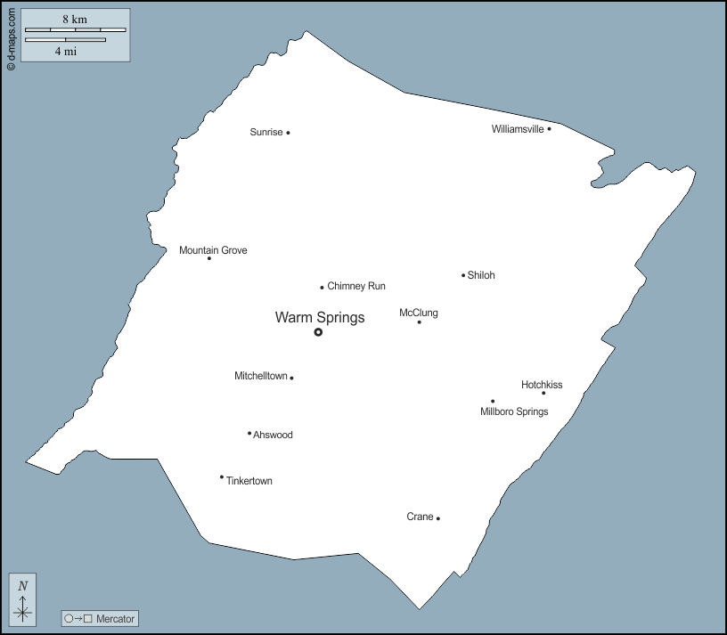 d-maps > 美国 > 弗吉尼亚州 > 巴斯縣 > 大纲, 主要城市, 名称