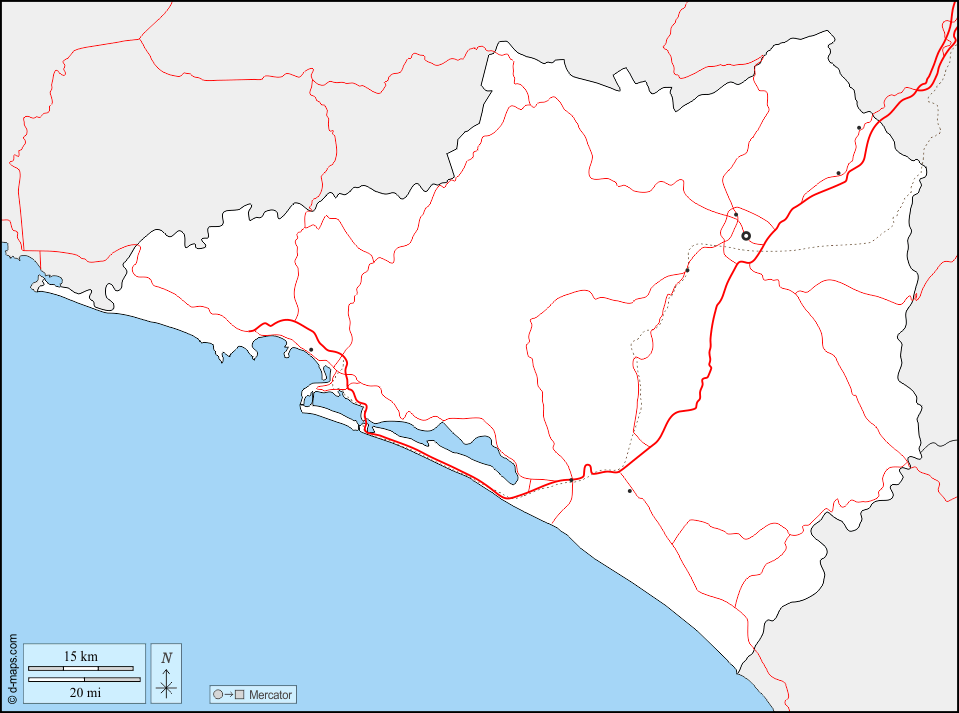 d-maps > 美洲 > 墨西哥 > 科利馬州 > 边界, 主要城市, 道路