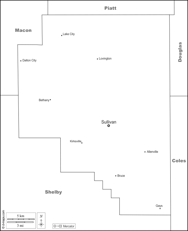 Allenville - Bethany - Bruce - Dalton City - Gays - Kirksville - Lake City - Lovington - Sullivan