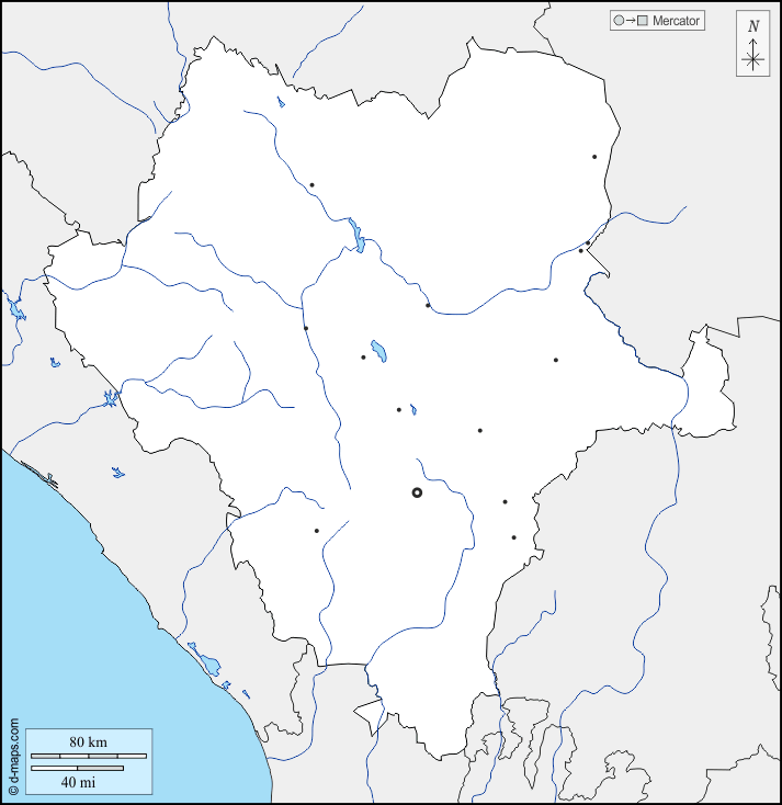 d-maps > 美洲 > 墨西哥 > 杜蘭戈州 > 边界, 水文学, 主要城市