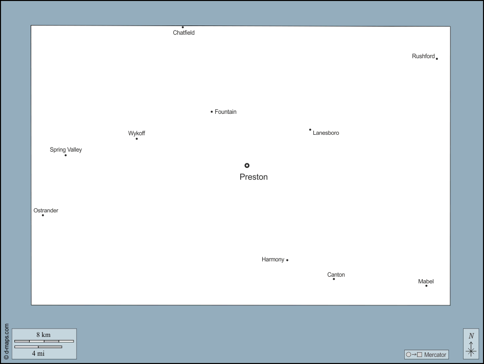 Canton - Chatfield - Fountain - Harmony - Lanesboro - Mabel - Ostrander - Preston - Rushford - Spring Valley - Wykoff