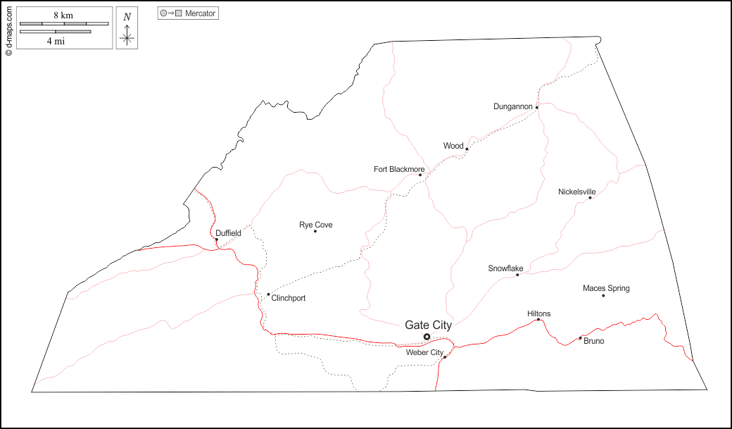 d-maps > 美国 > 弗吉尼亚州 > 斯科特縣 > 大纲, 主要城市, 道路, 名称, 白
