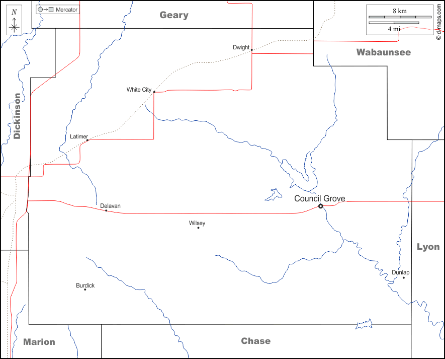 Burdick - Council Grove - Delavan - Dunlap - Dwight - Latimer - White City - Wilsey