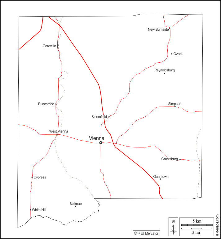 d-maps > 美国 > 伊利诺伊州 > 約翰遜縣 > 大纲, 主要城市, 道路, 名称, 白