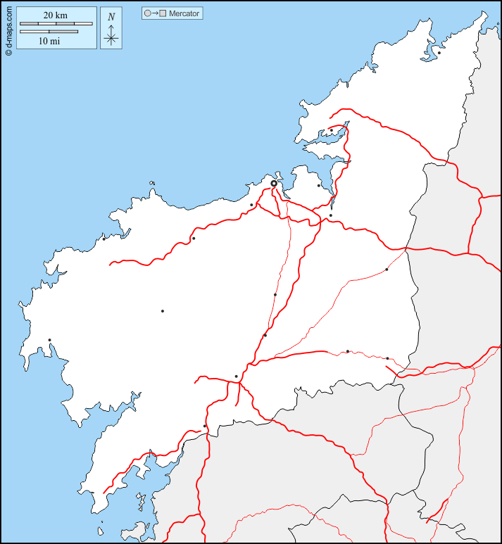 d-maps > 欧洲 > 西班牙 > 拉科魯尼亞 > 边界, 主要城市, 道路