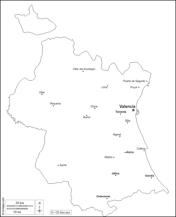 d-maps > 欧洲 > 西班牙 > 瓦倫西亞 > 大纲, 主要城市, 名称, 白