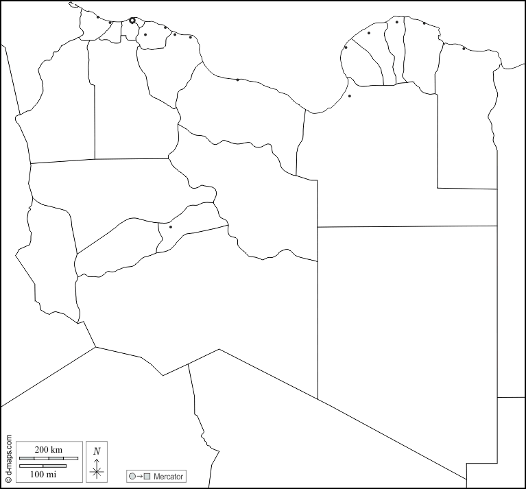 d-maps > 非洲 > 利比亚 > 利比亚 > 边界, 司, 主要城市, 白