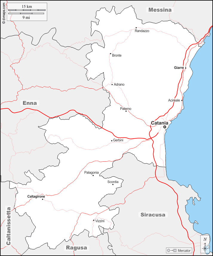 d-maps > 欧洲 > 意大利 > 卡塔尼亞 > 边界, 主要城市, 道路, 名称