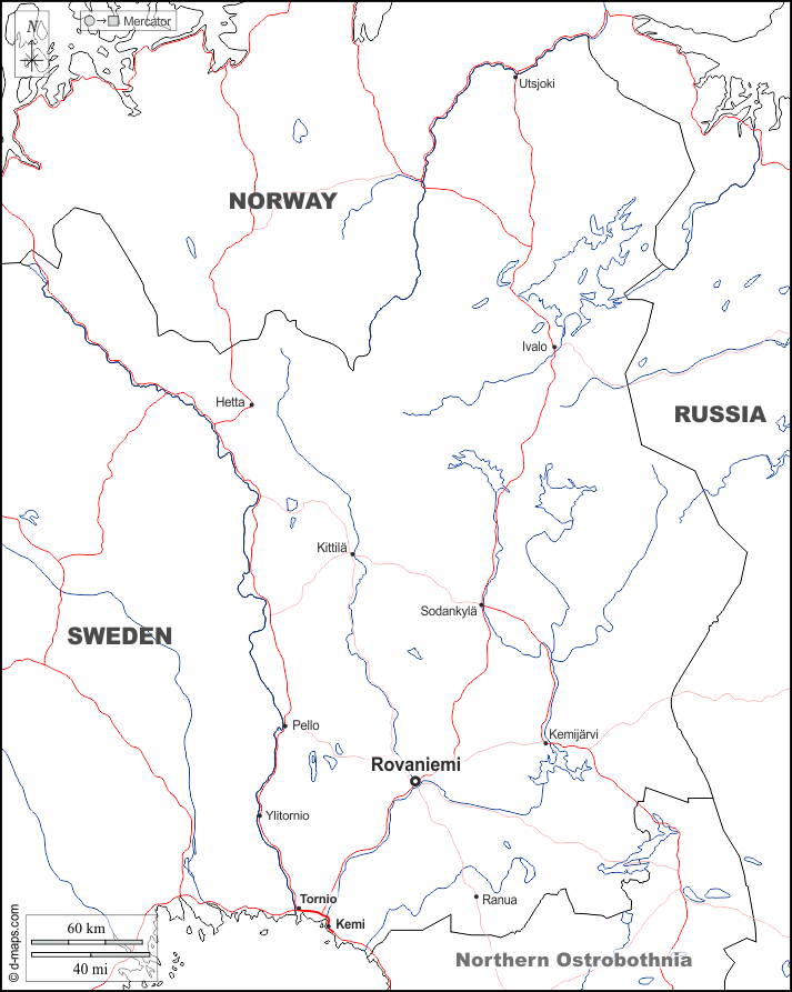 Hetta - Ivalo - Kemi - Kemijärvi - Kittilä - Pello - Ranua - Rovaniemi - Sodankylä - Tornio - Utsjoki - Ylitornio