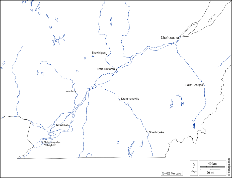 d-maps > 美洲 > 加拿大 > 魁北克南部 > 大纲, 水文学, 主要城市, 名称, 白