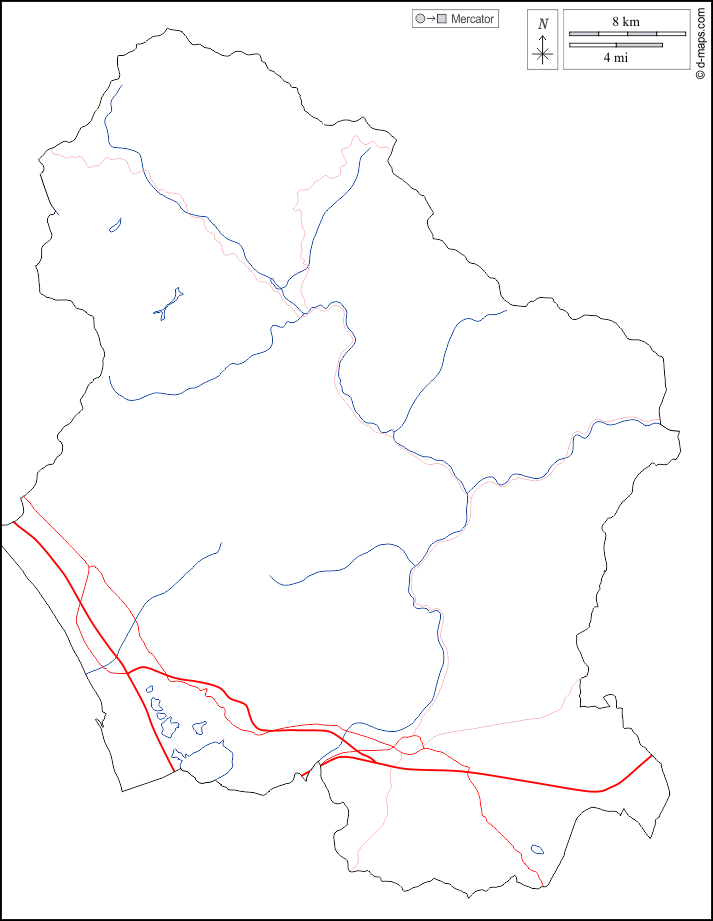 d-maps > 欧洲 > 意大利 > 卢卡 > 大纲, 水文学, 道路, 白
