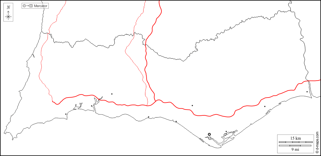 d-maps > 欧洲 > 葡萄牙 > 法魯區 > 边界, 主要城市, 道路, 白